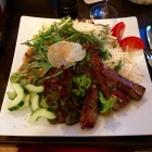 Vom Haus erhielten wir ein Körbchen mit zwei verschiedenen Brotsorten und einem Schälchen mit einer aromatischen Joghurtcreme. Kurz danach bekam ich auch schon meine Asia Garnelen. Und jetzt bitte ich schon um Entschuldigung, dass ich keine Bilder vom Essen gemacht habe, denn wir waren mit Bekannten zusammen und ich wollte mit meinem Geknipse nicht den Abend stören. Ich hatte 3 in Teig gebackene große Garnelen, welche innerhalb der Panade ein tolles Gewürz hatten, welches mich zwar nach Asien erinnerte, ich es aber nicht definieren konnte. Weiterhin befand sich auf dem Teller ein gebackenes Schälchen, in der sich ein Mango Chutney befand, nicht zu süß sondern einfach köstlich und ein wenig erfrischend zusammen mit den Garnelen. Zusätzlich eine weitere Sauce, die auch mit Mango angerichtet war, mich aber ein wenig an Remoulade erinnert. Dazu ein kleiner gemischter Salat mit einer leicht süßlichen Marinade. Einfach köstlich und wirklich empfehlenswert.