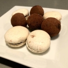 Den Abschluss bilden eine mit Schokolade überzogene Kokosmakrone und ein Würfel knuspriger Karamellkerne. Beides ausgesprochen lecker.