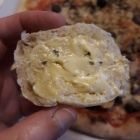 Es gab Weißbrotscheiben und kleine Pizzabrötchen. Sie waren warm und frisch. Die beiden Aufstriche waren Butter und eine helle Creme.