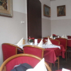 Die Tische sind klassisch eingedeckt. Die Servietten sind aus ordentlichem Papier. Der Raum wirkt durchaus etwas altmodisch aber stimmig eingerichtet.