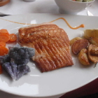 Ebenso war auch der Wolfsbarsch als ganzer Fisch gebraten worden. Die zweite Kraft bereitete ebenfalls das Filet zu. Der Kellner gelang das auch besser; denn es waren keine Gräten im Fleisch. Der Fisch hatte ein schönes Eigenaroma und war innen saftig und mild. Auch die Haut war kross und gut zu verzehren.