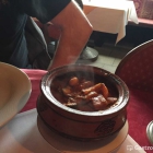 Als Hauptgericht gab es einen vegetarischen Topf mit viel Gemüse, der mehr als dampfend serviert wurde. Die fleischfressende Fraktion am Tisch hatte zum einen die Tandoori Platte (15,90€): Pute, Hähnchen und Lammfilet mariniert mit Joghurt und Tandoorigewürz. Zum anderen Malai Kebab (13,90€): Hähnchenfilet mariniert mit gemahlenen Cashewkernen und Safransoße. Ich wählte Chicken Kashmiri Tikka (13,90€): Hähnchenfilet mariniert mit Joghurt, Tandoorigewürz und Kashmirimasala, Tomaten, Zwiebeln und Paprika.