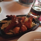 Dazu gab es für alle eine große Platte mit Basmatireis und nochmal das Soßenkarussell. Serviert wurden die Fleischgerichte auf heißen, gusseisernen Platten. Zusätzlich bestellten sich einige Esser noch Naan-Brot mit und ohne Knoblauch (2,90€/2,50€). Dadurch wurde es recht eng auf dem Tisch und die Biergläser hatten kaum mehr Platz.
