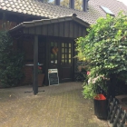 Da ist seid der Eröffnung nicht mehr umdekoriert worden. Neben uns noch ca. 10 andere Gäste im großen Gastraum. Im Laufe unseres Aufenthaltes füllte es sich allerdings merklich bis hin zu einem guten Grad an Auslastung. Die Lage am Emsradweg verhilft zu hoher Besucherfrequenz.