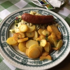 Ich hatte mich für frischen Wirsing mit Röstkartoffeln und einer Mettwurst entschieden.