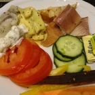 Hering (viele schüttelt es jetzt bestimmt) in mehreren Variationen, Lachs, Linsensalat, vielfältige Rohkost, Frischkäse, Quark, gutes Brot (die Brötchen überzeugten nicht so sehr).