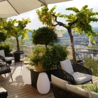 Die oberere Terrasse im lässigen und stilvoll dekoriertem Loungestil begrüßte uns mit Nachmittagssonne und freiem Blick auf Homburg. Auf die Endlosschleifengechillteloungemusik hätten wir verzichten mögen.