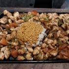 Hier kommen mehrere Fleischsorten (Lamm, Geflügel) zum Einsatz. Manche Teile sind aus Hackfleisch, andere am Stück gebraten. Auf jeden Fall alles vom Holzkohlegrill. Auch das Gemüse ist knackig.