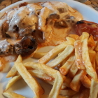 Meine Frau mag das geflügel hier recht gerne; es ist gut gewürzt und zart. Heute war jedoch relativ viel Sauce bzw. Creme über dem Fleisch in Strähnen quer verteilt worden. Das will sie beim nächsten Besuch unbedingt verhindern und bei der Bestellung ansagen. Die Kellnerin bedauerte, dass die Anrichtung nicht überzeugt hatte und versicherte, dass man das durchaus vorher wünschen kann.