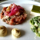 Duett von Kalbsfilet & Thunfisch - Sashimigeflämmte Wassermelone / Avocado / Szechuan Pfeffer / Brioche Croutons