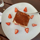 Unsere Zufriedenheit lässt sich schwerlich steigern, dennoch wollen wir die Nachspeisen nicht unversucht lassen. Meine Frau wählt ein