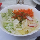 Der Salat war bei allen im Wesentlichen gleich: Tomatenstücke, Möhrenraspel, Schlangengurke, Radieschen, Kohl, Eisbergsalat. Die Zutaten waren frisch, das Dressing reichlich aber wenig gewürzt.
