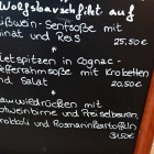 Die Ausrichtung der Speisekarte hat sich im Vergleich zu unserem ersten Besuch nicht verändert: Schnitzel und Steaks in etlichen Variationen, auch Fisch und Vegetarisches und natürlich Damwildgerichte. Preislich sind einige Gerichte nach wie vor schon etwas gehoben, aber die Qualität trägt meiner Erfahrung nach dazu bei, dass das Gericht den Preis wert ist.