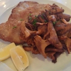 Die beiden Schnitzel sind gut zubereitet, leichte Blasen in der goldgelben, knusprigen Panade. Das Fleisch ist superzart und kein bißchen trocken. Auch die Pommes frites lassen an nichts zu wünschen übrig, goldgelb und knusprig.