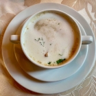 Nach kurzer Wartezeit bekommt meine Frau die Pfifferlingsrahmsuppe.