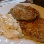 Zucchinipuffer mit Zaziki. Die sahen etwas blass aus, knusprig waren sie leider auch nicht. Aber geschmeckt haben sie wohl dem Fräulein, gerade mit dem Zaziki, welches reichlich bemessen war konnte man das durchaus gut essen. Etwas Mühlenwürze war aber für meinen Geschmack nötig. Ein solides 3* Gericht.