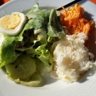 Der Beilagensalat wurde vorab serviert. Eine schöne Portion frischer Zutaten, leichtes Dressing. So mag ich es gerne.