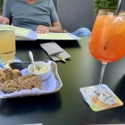 Die Frage nach ersten Getränkewünschen wurde von mir mit der Gegenfrage nach alkoholfreien Aperitif-Optionen gekontert, was wiederum die Bestellung eines führerscheinfreundlichen Aperol Spritz (0,3l zu 6 Euro) zur Folge hatte.