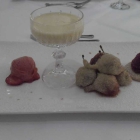 Zum krönenden Abschluß bekamen wir noch je eine Tranche vom am Morgen frisch gebackenen Blaubeerküchlein; sehr gelungen. Alle Speisen waren wirklich raffiniert gekocht und sehr schön angerichtet; ein Ein-Sternekoch müsste sich schon sehr anstrengen um da noch groß etwas zu verbessern. Die für mich ein bisschen zu "neutral" geratenen Steinbuttklößchen, das Rüben-Kürbis-Süppchen und der mir eine Spur zu saure Zucchinisalat drücken die eigentlich fälligen fünf Sterne für "Essen und Trinken" auf sehr gute viereinhalb Sterne.