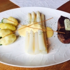 Wir aßen beide Pastetchen mit Spargelragout - war sehr lecker! Die nette Bedienung hat uns dazu einen Weißburgunder empfohlen, dieser hat perfekt zu unserer Vorspeise gepasst.