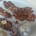 Wir bestellen zwei Mal die gegrillten Peperoni(5,90)mit Knoblauchsauce und extra Knoblauch. Als Hauptspeise Leber mit Zwiebeln und Reis, Spieß mit Schafskäsesauce (13,90), Teufelsspieß (12,90), Spieß mit Metaxasauce, Appolon Teller (17,90). Es werden die Peperoni serviert. Die Peperoni haben Grillaromen, allerdings fehlt es ihnen etwas an Pep. Die Knoblauchsauce wohl Convenience, aber schmackhaft. Die Peperoni mit extra Knoblauch werden noch extra mit scharfem Paprika-Pulver „scharf“ gemacht, richtig Schwung kommt aber da nicht ran.