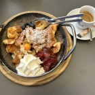 Wer wie ich den dazugehörigen Salatteller abbestellt und dafür Pommes nimmt, schneidet finanziell schlechter ab, denn es werden später 15,90 Euro berechnet. Kein Trinkgeld gabs für Filiz. Wir hatten den Eindruck gewonnen, sie macht zwar ihren Job und das ohne Lächeln, stellt die Teller hin wo sie denkt es hat Platz ... ich mag als Gast nicht das Geschirr umräumen oder ihr dabei helfen.