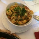 Für den Durst werden natürlich hausgebraute, traditionsreiche Fürstenberg Biere in allen Variationen angeboten. Für den Hunger die deutsche Küche mit z.B. Flädlesuppe (3,90 €), das Braumälzersteak mit Bier- Zwiebelsauce, Bratkartoffeln und Salat (15,60 €), Braumeister-Pfännle, Medaillons vom Schwein, Pute mit Pilzen, Rahmsauce und Nudeln (17,50 €) oder wer es vegetarisch mag Gemüsenudeln für 9,80 €und vieles mehr. Die Zwiebeln kamen zweierlei auf den Teller, frittiert und aus der Pfanne (kalt und warm- sehr ungewöhnlich), die Bratkartoffeln waren zwar aus der Pfanne, aber etwas pampig und auch die Nudeln hatten ihren Garpunkt überschritten. Das dazu gereichte Fleisch hatte seine Berechtigung und das Fürstenberg Bier schmeckte fürstlich süffig.