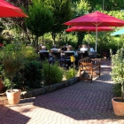 Wir nahmen einen Haus-Aperitif (Riesling-Sekt), der bereits eine Ahnung bzgl. der Weingut-Qualitäten aufkommen lies. Ich nahm als Hauptgericht das Wildschweinklein, ein Wildschwein-Ragout mit selbstgemachten Papardelle-Nudeln. Mit 16,50€ für diesen Gang zahlt man mehr als für ein übliches Nudelgericht, der Preis war jedoch absolut gerechtfertigt, denn hier hatte der Koch kreative Arbeit auf hohem Niveau geleistet. Das Ragout hat eher die Konsistenz einer Sauce Bolognese und war geschmacklich hervorragend mit frischen Zutaten abgerundet. Ich trank dazu einen hauseigenen Merlot "Roter Lehm" (7,50€/Glas). Solche Rotwein-Qualität hatte ich aus deutschen Weinbergen nicht erwartet. Der Wein mundete mir so gut, dass ich im Anschluss eine Kiste dieses Weines mit nach Hause nahm. Dieser Service wird für alle Weine der Karte angeboten, so dass man jeden Wein vor dem Kauf testen kann. Diese können anstelle von 0,25l-Gläsern auch in 0,1l-Gläsern verkostet werden. Im Anschluss nahmen wir eine Käseplatte mit diversen Köstlichkeiten aus dem Käsekeller. Für 8,50€ war diese vom Preis/Leistungsverhältnis als eher günstig einzustufen. Als Digestif wählte ich einen hochwertigen Trester, hier genannt "Ben Gun". Das Glas zu 8,50€ war nicht gerade billig, der Brand war jedoch in jedem Tropfen sein Geld wert. In Nase und Gaumen weiss man auch hier Spitzengenuss zu präsentieren: Ein würdiger Höhepunkt eines grandiosen kulinarischen Ereignisses. Wir werden in jedem Falle wieder kommen und nehmen uns dann auch die Zeit für eine Kellerführung mit Weinprobe. Tipp: Unbedingt im Sommer einen Tisch auf der Terrasse reservieren. Die Aussicht ist unbezahlbar.