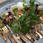 Das Ganze erinnerte geschmacklich an Sushi Bake und, zumindest nach Beiseiteschieben des Kräuterdaches, optisch an die überall im Restaurant aufgehängten, großformatigen Bilder, die man zu höheren dreistelligen Beträgen erwerben kann, wenn man in Kofferraum und Portemonnaie entsprechende Reserven hat.