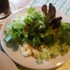 Meine Frau bestellte die Andorfer Hauspfanne, das waren Lendchen in Champignon-Rahmsoße mit Spätzle, dazu einen Salat. Der Salat bestand aus Karotten, etwas Nudelsalat, Gurken und verschiedenen Blattsalten mit einem guten Essig-Öl-Dressing. Angenehm ist, dass auf Zutaten verzichtet wird, die es um diese Jahreszeit bei uns noch nicht so reichlich gibt. Der Salat erwies sich auch als durchgehend frisch. Inzwischen ist ja ein guter Salat leider nicht mehr selbstverständlich.