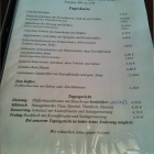 Unter der Woche wird die Tageskarte (diese ist schon zusätzlich zur "normalen" Karte) durch spezielle Essen ergänzt. Siehe Kartenfoto, ganz unten. 4,50 € werden dafür aufgerufen, die Portionen nicht ganz so üppig wie die übrigen Essen sonst, für ein Mittagessen, welches nicht belastet, ideal. Mittlerweile schaue ich bei Besuchen immer erst, was es Besonderes an diesem Tag gibt.