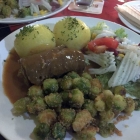 Auch meine Freundin war mit ihrem Sauerbraten sehr zufrieden und genauso begeistert vom Rosenkohl wie ich. Ich durfte ein Probierstück vom Fleisch haben, auch hier das Fleisch zart und saftig, aber mir wäre es einen Touch zu sauer eingelegt gewesen.