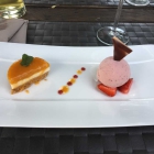 Die Panna Cotta gefiel mir auf diesem Teller am besten. Ein guter Kontrast zwischen frischer Creme und säurebetonter Haube aus einem Aprikosenmus sowie dem krossen Boden aus Gebäck. Auch gut das Eis, dem es für mich wie immer eigentlich nicht bedurft hätte. Schöner Abschluss. Dazu gab es, der Pinot Blanc war leer, einen fruchtsüßen Riesling vom WG Heinz Dehren aus Poltersdorf, ebenfalls an der Mosel.