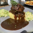 Dazu verlockende Bratkartoffeln und ein Salat, schlichtes Gericht, perfekt zubereitet. Mein Hauptgang musste was leisten, um da mit zu halten. Ich hatte mich für ein Schmorgericht entschieden, geschmorte Ochsenbäckchen.