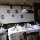 Das Haus ist ein typisches konventionelles Landgasthaus mit viel dunklem Holz an Decke und Wänden. Auch das Mobiliar ist aus dunklem Holz, die Stühle und Bänke mit Sitz- und Rückenpolstern aus dezent grau-bunt gemustertem Stoff. Die Tische waren mit weißen Stofftischdecken und ebensolchen Überdecken bedeckt, die Plätze mit Besteck, Wein- und Wassergläsern und kunstvoll gefalteten Stoffservietten eingedeckt. Außerdem standen auf jedem Tisch eine etwas breitere Glasvase mit einem Blumenarrangement, eine in ein hohes, schlankes Weckglas eingegossene Kerze und Salz- und Pfeffermühlen aus Edelstahl und Acrylglas.