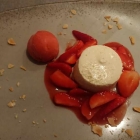 Quarkmousse mit marinierten Erdbeeren und hausgemachtem Rhabarbersorbet