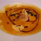 Zum wichtigsten, der Spargel war auf den Punkt gegart! Mit Biss, nicht zu weich, passend mit einer gut abgeschmeckten Vinaigrette. Ei und Kerbel waren dazu weitere ergänzende Begleiter. Den grünen Salat hätte es nicht gebraucht, aber frisch war er und somit störte er nicht weiter. Nun zum Hauptbestandteil der Vorspeise, der Panna Cotta. Die Konsistenz war auch mir nicht fest genug, vielleicht war beim dosieren des Geliermittels etwas schief gegangen, ich würde die auch eher fester ausführen. Geschmacklich war diese aber ein Volltreffer, perfekt abgeschmeckt mit Muskatnuss! Konsistenz etwas verbesserungswürdig, beim Geschmack nicht. Guter Start in die vier Gänge. Danach auch für uns beide eine klassische Spargelcremesuppe.