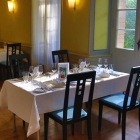 Bei schönem Wetter und angenehmen Temperaturen haben wir uns für einen Tisch im Freien entschieden - alternativ dazu gibt es zwei sehr schöne historische Räume, im ehemaligen Spielhaus der Herzöge und Könige, die auch für Hochzeiten, Geburtstage und andere Feiern gebucht werden können.