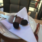 Nach zehn Minuten hatten wir immer noch keine Speisekarten, eine dunkelhaarige, etwas wortkarge weibliche Bedienung brachte uns aber schon mal ein paar Scheiben Weißbrot und ein Schälchen mit drei grünen und vier geschwärzten Oliven. Immerhin für vier Personen. Recht großzügig, wie ich meine. Zwei Gäste bekommen dann wohl drei Oliven? Dass wir immer noch auf dem Trockenen saßen und auch keine Karten studierten verwunderte die Servicekraft erst nachdem sie das dritte Mal an uns vorbei hüpfte. Die Tische stehen aber auch eng beisammen… Ein fragender Blick in meine Richtung, so nach dem Motto „Karte?“ und ich nickte nur, schon bekamen wir von ihr die ersehnten Karten. Jetzt saßen wir schon fast eine viertel Stunde.