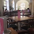 Wir betraten das Lokal, um kurz nach neun Uhr war es uns draußen noch zu kühl, und suchten uns einen Platz. Die junge Dame, mit rotem Bistroschurz als Servicekraft erkennbar, kam auch gleich zu uns an den Tisch begrüßte uns freundlich und fragte, ob sie uns den schon was zu trinken bringen dürfte. Bei der Bestellung vom Kaffe wurden wir gefragt, welchen wir gerne haben möchten, groß oder klein. Eine Karte befindet sich auf dem Tisch, vom Nachbartisch noch eine stibitzt und nach Frühstücksangeboten geschaut. Wir wurden auch schnell fündig und konnten die Frage bei der Getränkelieferung, ob wir was frühstücken möchten auch gleich beantworten und unsere Bestellung aufgeben. Das Besteck mit Servietten und Streuer-Mühle wurde auf einem Teller an den Tisch gestellt und das Frühstück ließ auch nicht lange auf sich warten. Sie wünschte uns einen guten Appetit und fand auch noch Zeit um während des Essens an unseren Tisch zu kommen und nachzufragen, ob alles in Ordnung sei. Ein nachgeordertes Wasser fand auch recht zügig Platz an unserem Tisch. Nun wurde es voller, wir genossen unser Essen und sahen wie sie mächtig im Stress war, was zufolge hatte, wir saßen ca. 10 min. vor unserem leeren Geschirr. Beim abräumen erkundigte sie sich, ob es uns denn geschmeckt hätte und wollte schon wieder davon flitzen. Ich orderte schnell die Rechnung und sie sauste davon mit den Worten, bringe ich gleich. Es wurde immer voller und während ihres umherwirbelns bekamen wir die Worte von der Ferne an den Tisch, komme gleich. Nach wieder 10 min. war es dann soweit, sie traf mit der Rechnung an unserem Tisch ein. Sie ließ sich den Stress nicht anmerken, lächelte freundlich, bedankte sich für unseren besuch , verabschiedete uns freundlich und wünschte uns noch einen schönen Sonntag.