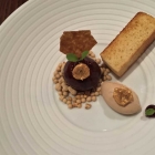 Wieder ein zu Teller gebrachtes Kunstwerk. Ein fruchtiger und vielfältiger Reigen. Nicht zu süß, sehr erfrischend. Perfekt um die Geschmackssinne neu für das eigentliche Dessert zu kalibrieren. Die Perlen, wenn ich mich recht erinnere, Passionsfrucht. Exotische Früchte als Eis, Cremes, einfach pur, als Sorbet. Für mich, da nicht so süß, ein Traumdessert.