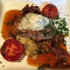 Geworben wird mit Spezialitäten aus der österreichischen Küche. Es gibt aber auch saisonale Gerichte. Wir wählten aus der Karte die Wildkräuterahmsuppe mit gerösteten Steinpilzen und Serviettenklößchen (4,90€). Serviert wurde diese in einer Löwentasse. Von Kräutern keine Spur, die Steinpilze waren Champignons und die Klößchen Mehl-Butter-Klümpchen. Es konnte nur noch besser werden. Als Hauptspeisen entschieden wir uns für die Bandnudeln mit gegrillten Garnelen in Olivenöl, Knoblauch, Chili und mit frischen Kräutern (13,90€). Die Bandnudeln kamen in einem großen tiefen Teller. Das Chili fand sich in Chilifäden obenauf und die frischen Kräuter fehlten komplett. Geschmacklich daher kein allzu großes Erlebnis. Der zweite Hauptgang war ein gekräutertes Schweinerückensteak Tiroler Art mit Pfefferbutter, Grilltomate mit Speck und Zwiebelröstkartoffeln (15,90€). Ein österreichisches Gericht - jetzt konnte ja nichts mehr schief gehen. Weit gefehlt. Die Pfefferbutter enthielt meiner Meinung nach keinerlei Pfeffer. Der Speck nicht kross ausgebacken, die Röstkartoffeln vermutlich ein Convenience-Produkt, allerdings in der Pfanne gebacken und das Rückensteak durchgebraten und somit trocken. Insgesamt bei einem Österreichischem Koch keine Spitzenleistung.