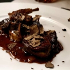 So musste ich - auch fotografisch - beim folgenden Rehrücken mit Schwarzwurzel und Wildpreiselbeeren passen. Zumal auch hier eine zwei Finger dicke Tranche mit kräftig gebräuntem Äußeren und zartrosa inneren Werten lockte. Interessanterweise gingen bei den beiden verbliebenen Essern die Meinung über die geschmackliche Intensität auseinander. Ich war derweil damit beschäftigt nicht zu platzen.