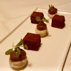 Die Süße der venezianischen Zwiebel (frittiert, gebacken und als Crème) war ein noch besser Mitspieler für das Bouquet ungeheuer intensiver Wildkräuter und die salzigen Taggiasca-Oliven. Ganz einfache Zutaten und ein beglückendes Geschmackserlebnis. Bravo!