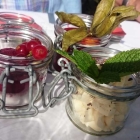 Das 3erlei meines Mannes jeweils im Weckglas, das Schokomousse schön mit Spritztülle im Glas eingefüllt. Mein Mann war sehr zufrieden mit diesem süßen Abschluss.