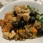 Bin ich kein großer Anhänger von! Und wenn so ein Buffet ein Genuss sein soll, dann braucht es erstens Gäste, die sich zu benehmen wissen am Buffet und zweitens ein ständiges Auge des Service auf den Zustand des Angebots. Wenn man das ernsthaft betreibt, dann frage ich mich, ob man wirklich Geld spart gegenüber einem Begleitsalat aus der Küche. Aber wir hatten Glück, beide Faktoren an unserem Besuchsabend waren ausreichend positiv und wir konnten einen guten Salat zusammenstellen. Meine Frau hatte sich als Hauptgericht wieder etwas vegetarisches bestellt.