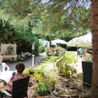 Beim Warten auf unser Essen war Geduld gefragt. In dem parkähnlichen Garten mit altem Baumbestand ließ es sich gut aushalten.