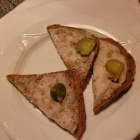 Kurz nach unseren Getränken gab es einen kleinen Gruß aus der Küche. Drei kleine Fettbemmchen sollten schon einmal auf die deftige Küche einstimmen. Frisches Brot, gut schmeckendes Griebenschmalz und ein Ringel saurer Gurke waren schon mal nicht schlecht.