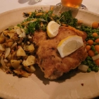 · 1x Ratsherrenschnitzel, ein 250 gr. Schweineschnitzel gefüllt mit Schinken, Käse, Gewürzgurke und Senf, dazu Mischgemüse und Bratkartoffeln für 25,90 €