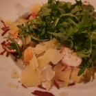 Meine Frau wollte mal was Neues probieren, und wünschte sich die Süßkartoffel-Gnocchi-Pfanne. Ein großer Teller mit reichlich bissfesten Gnocchi, belegt mit frischem Rucola und einigen Kirschtomaten sowie gebratenen Waldpilzen stand vor ihr. Die Gnocchi aus Süßkartoffel waren mal was ganz anderes als man es sonst so gewohnt ist. Abgerundet wurde das ganze mit einem Klecks Kräuterschmand und reichlich frisch geraspelten Grana Padano. Nicht schlecht.